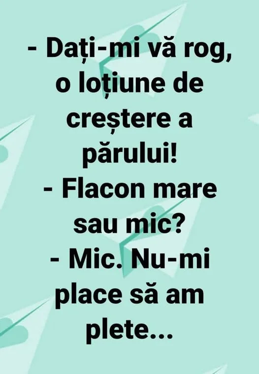 Se duce un om la un magazin zoo și zice: – Aveți vreun animal vorbitor? Vânzătorul: – Da, avem, poftim o omidă vorbitoare! Cumpără omul omida, o aduce acasă și o pune într-o cutiuță, pe urmă îi spune: – Mergi la plimbare? Ea tace, el strigă mai tare: – Mergi la plimbare? Iarăși tace. Omul, enervat la maxim, strigă din toate puterile: – Mergi la plimbare? Omida: – Nu striga, bre, nu vezi că mă încalț?! Articolul – Aveți vreun animal vorbitor? apare [citeste mai departe…]