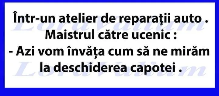Un tip la restaurant: – Ce să vă aduc la desert, domnule? – O cafea… Vezi să pui în ea nouă lingurițe de zahăr. – [citeste mai departe…]
