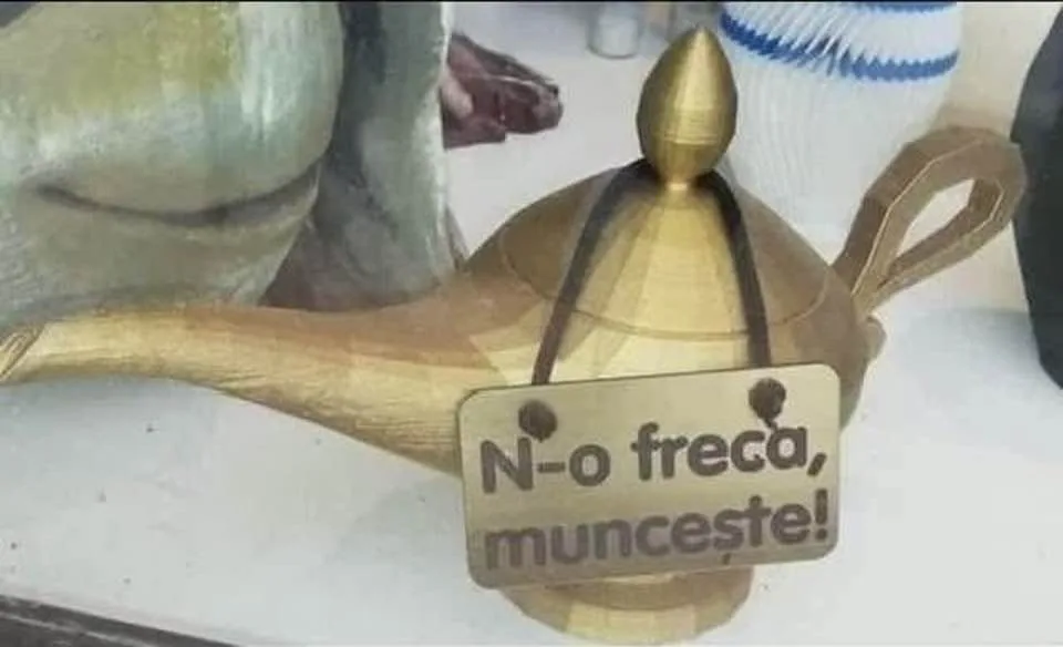 Un român se plimba pe o plajă și la un moment dat se împiedică de o lampă îngropată în nisip.O ridică și o scutură, când [citeste mai departe…]