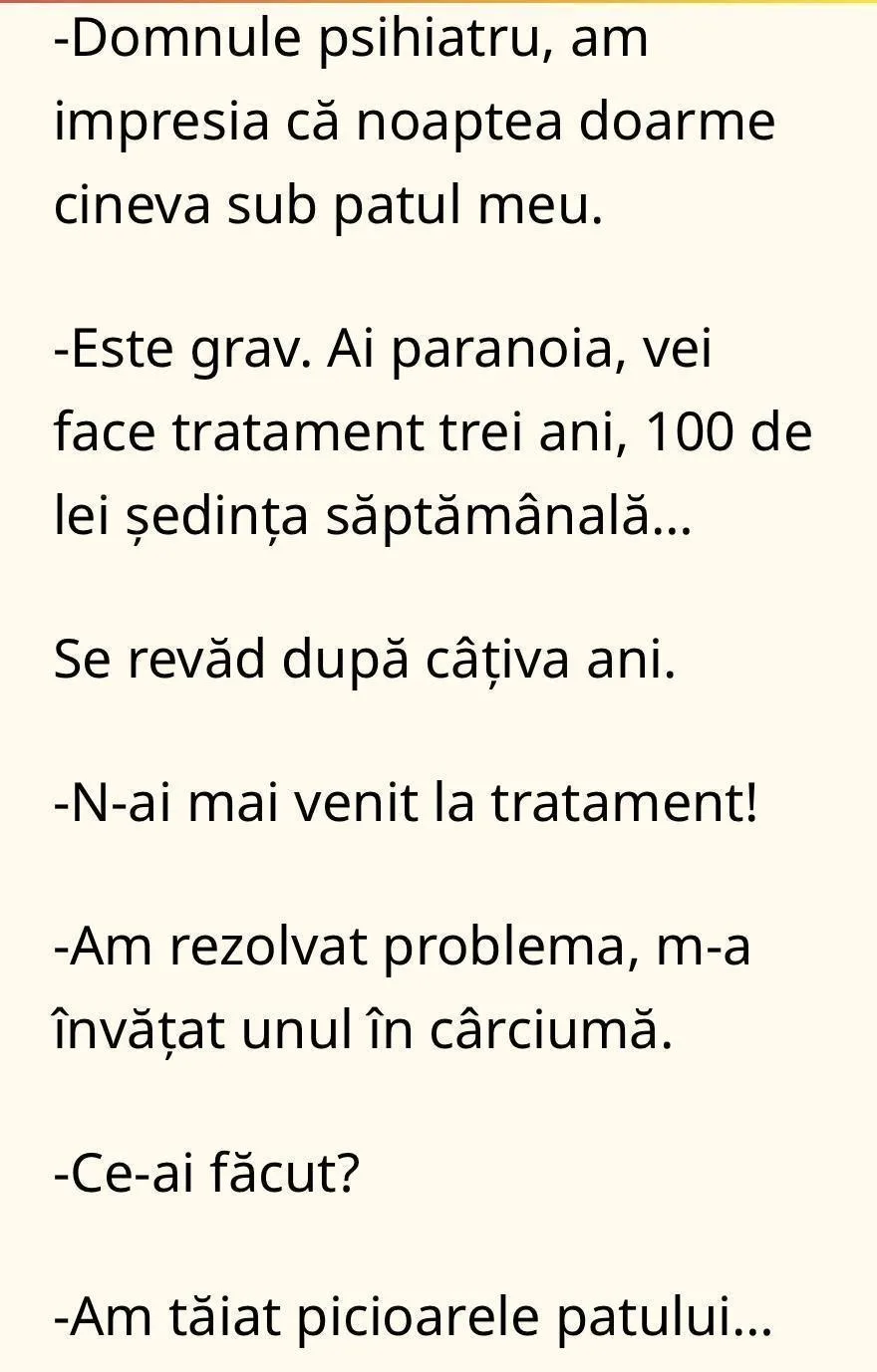 Un stomatolog a observat că următoarea sa pacientă, o bătrânică, părea cam speriată așa că s-a hotărât să-i spună o glumă în timp ce-și punea [citeste mai departe…]