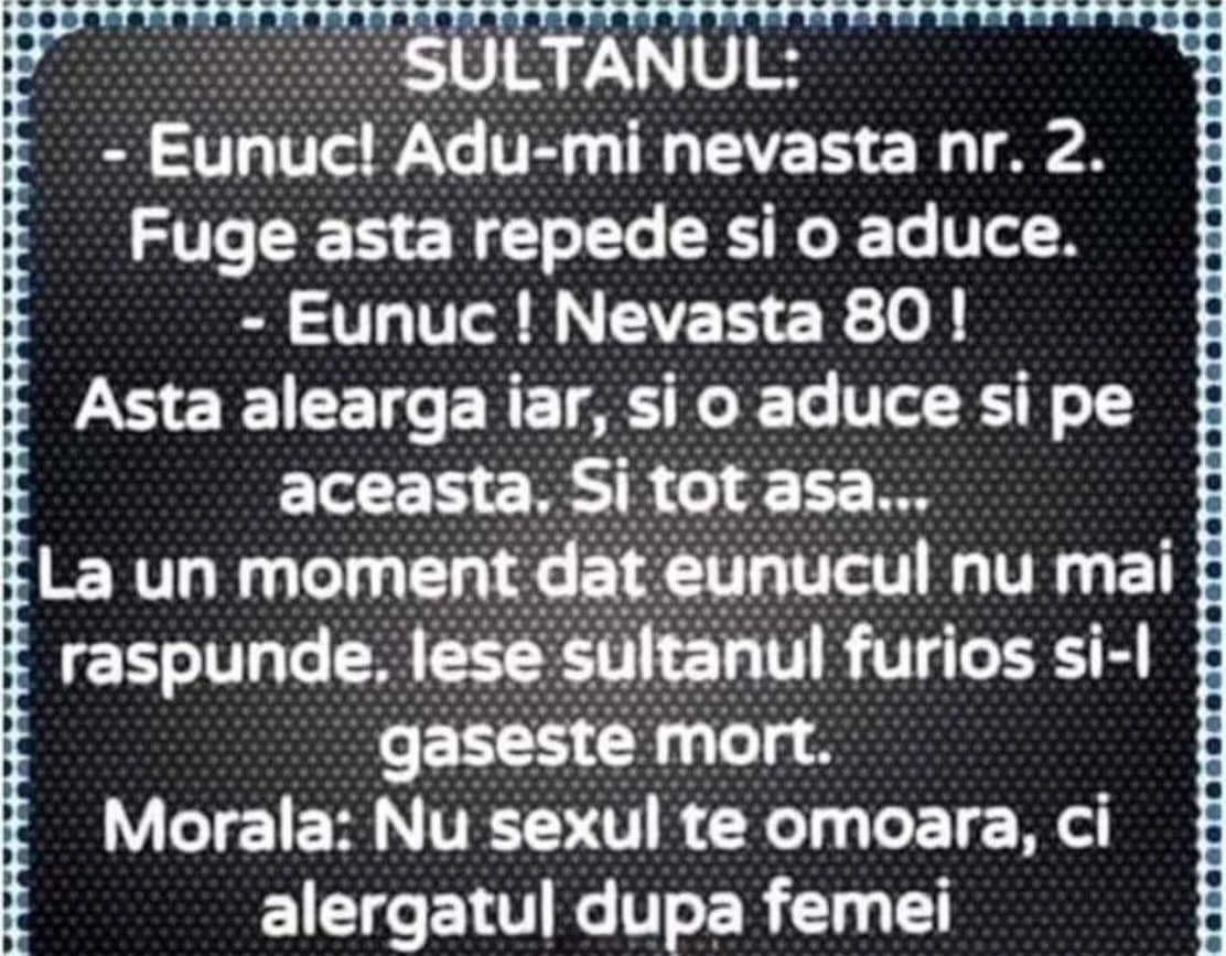 Un profesor întreabă clasa: – Copii, cine poate să-mi spună ce este „destinul”?Ion ridică mâna:– Domn’ profesor, destinul e atunci când te duci la frigider, [citeste mai departe…]