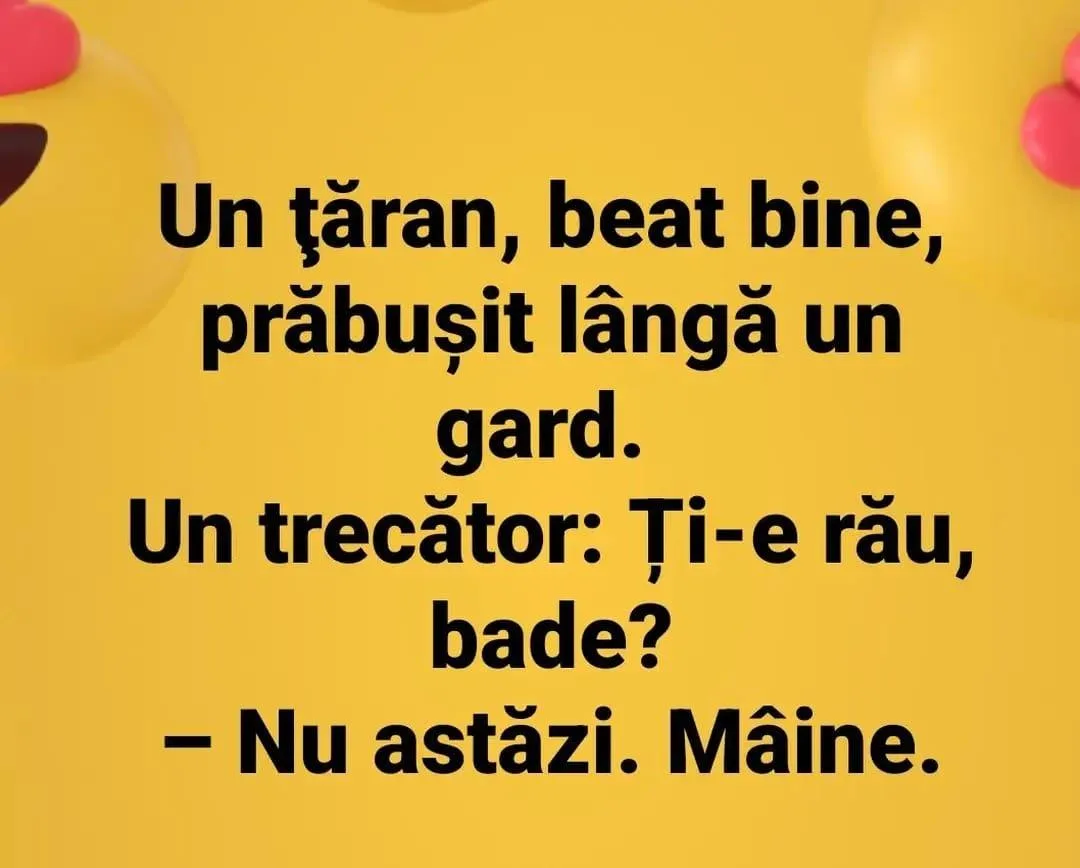 Un pescar trist scotea peștii unul după altul, fără momeală.Ceilalți pescari , nervosi foc:– Băi, prinzi pește după pește cu cârligul gol. De ce ești [citeste mai departe…]