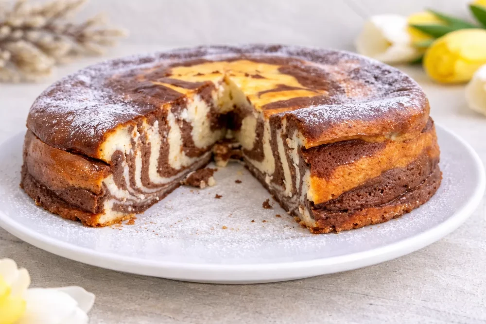 Desoperiti bucuria de a prepara una dintre cele mai delicioase variante de pasca – pască zebra sau marmorată. Fără aluat, cu brânză proaspătă de vaci, mascarpone și cacao, această pasca este un deliciu dens, cremos, cu o aroma puternica. Beneficiul suplimentar? Este mult mai ușor și mai rapid de făcut decât majoritatea variantelor de pasca.